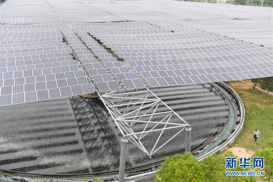 這是11月20日拍攝的福建省石獅市中心區(qū)城市污水處理廠處理池上的分布式光伏發(fā)電項目。 新華社記者 宋為偉 攝
