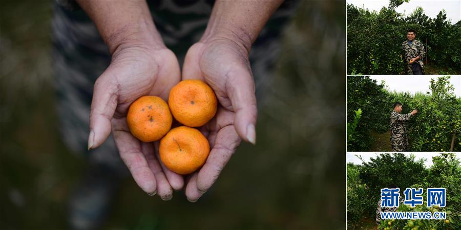 拼版照片:左圖為在永樂鎮(zhèn)四莫村,莫文振在果園里手捧剛剛摘下的桔子;右圖為莫文振在果園里勞作(照片均攝于11月19日)。莫文振從2012開始種植柑桔和甘蔗,2016年實現(xiàn)脫貧。 廣西融水苗族自治縣是國家扶貧工作重點縣,全縣“九山半水半分田”,生活生產環(huán)境較為惡劣,脫貧攻堅任務艱巨,目前還有7.68萬貧困人口。面對經濟發(fā)展落后、貧困面廣且程度深的現(xiàn)狀,當?shù)匕衙撠毠耘c創(chuàng)新產業(yè)扶持相結合,依托生態(tài)資源優(yōu)勢,實施“特色產業(yè)富民行動”,通過發(fā)展特色民族旅游、林下經濟和特色養(yǎng)殖業(yè)等扶貧產業(yè),帶動貧困群眾依靠勤勞的雙手,拔窮根摘窮帽,實現(xiàn)脫貧致富。據(jù)了解,目前全縣貧困戶參與特色產業(yè)發(fā)展的有2.9萬戶,扶貧產業(yè)覆蓋率達95%。 新華社記者 黃孝邦 攝