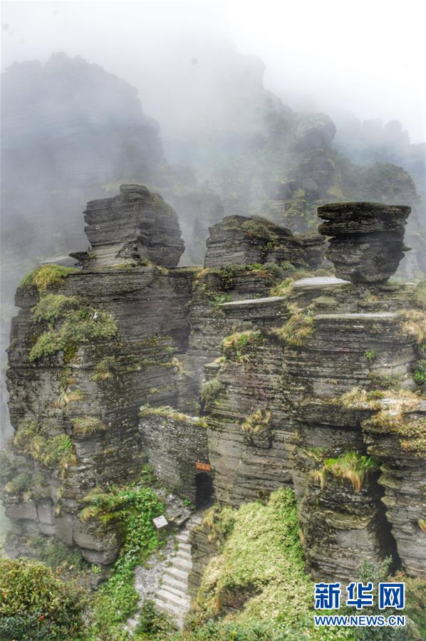 云蒸霧靄中的梵凈山(2011年9月6日攝)。新華社記者歐東衢攝 云蒸霧靄中的梵凈山(2011年9月6日攝)。新華社記者歐東衢攝 雨霧朦朧的梵凈山山頂風光(2010年9月15日攝)。新華社記者劉續(xù)攝