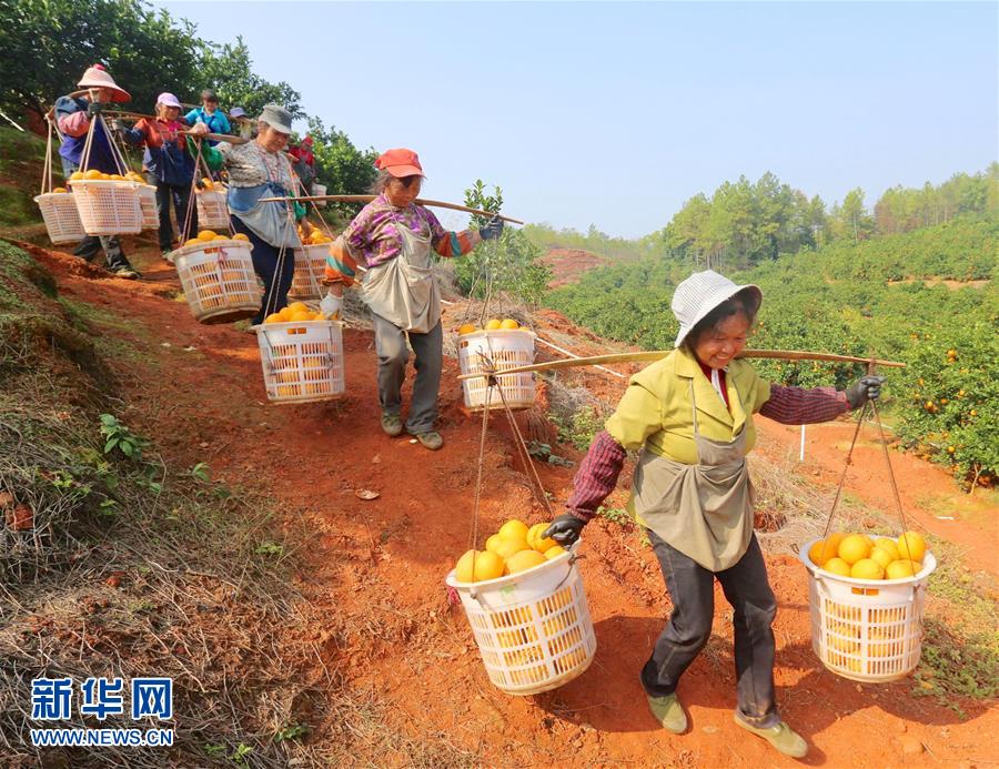近日,江西省贛州市于都縣近15萬畝臍橙進入豐收采摘期,當地農戶抓住晴好天氣采摘,果園呈現一派繁忙景象。 新華社記者 胡晨歡攝