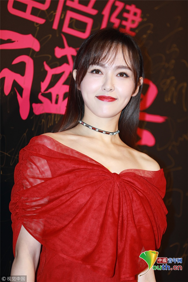 唐嫣紅色紗裙知性溫婉 胸前蝴蝶結(jié)點(diǎn) ...