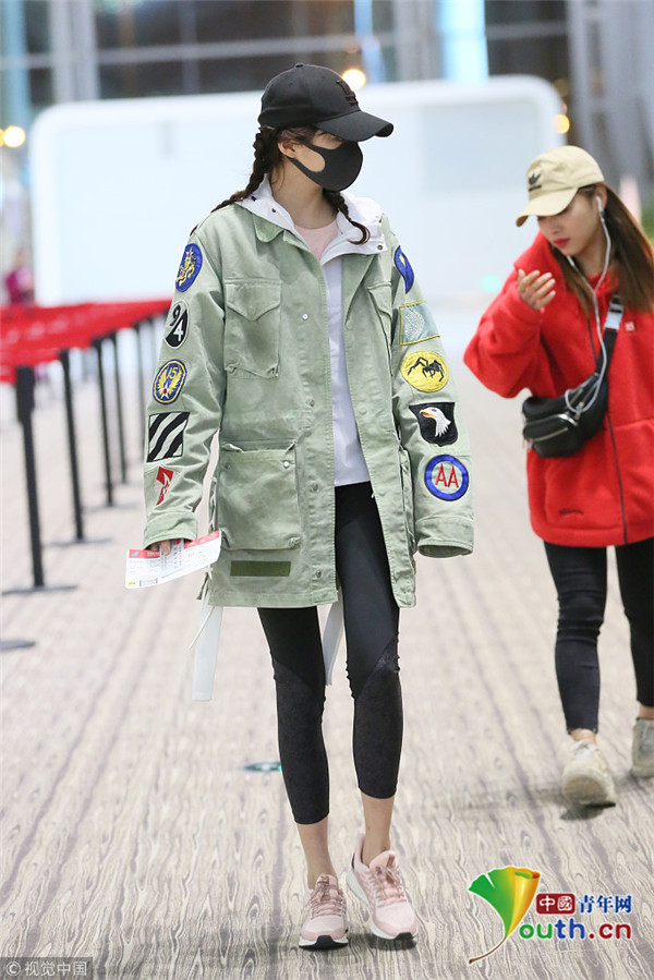 2018年12月18日訊,廣東省廣州市,近日,關曉彤現身廣州白云機場,穿的還是那件多次在機場穿過的工裝外套,看來關曉彤很喜歡這件男友風外套,當天其一路與助理熱聊不斷,不時張開雙臂似隨時“起飛”!