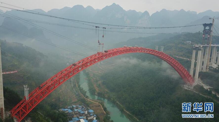9月12日使用無人機(jī)拍攝的大小井特大橋。目前,橫跨在貴州省羅甸縣大井河上的大小井特大橋建設(shè)進(jìn)入沖刺階段。大小井特大橋全長1.5公里,主跨450米,是世界最大跨徑上承式鋼管混凝土拱橋。據(jù)了解,該橋是平塘至羅甸高速公路關(guān)鍵性工程,對打通貴州“斷頭路”,助推滇黔桂石漠化片區(qū)脫貧攻堅(jiān)具有重要意義。新華社記者劉續(xù)攝