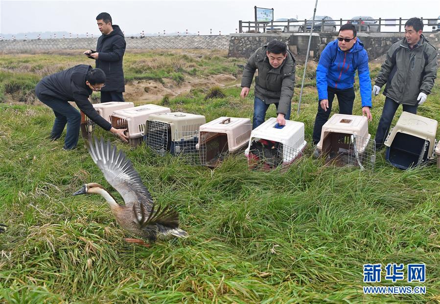 1月14日,工作人員正在放飛候鳥。 新華社記者 萬象 攝