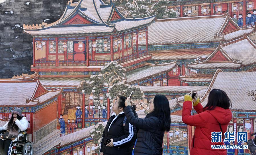 1月25日,游人在故宮內(nèi)拍攝古代宮廷過春節(jié)的繪畫。 春節(jié)將至,北京故宮博物院內(nèi)張燈結(jié)彩,到處懸掛著宮燈、萬壽燈、年畫、門神、福字等古代宮廷節(jié)日裝飾品,讓來自國內(nèi)外的游人感受到濃濃的年味。 新華社記者 李欣攝