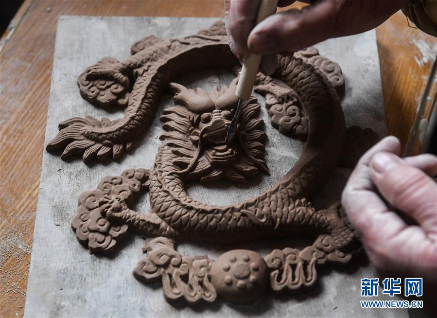 2月16日,陳新華的一名徒弟在進行堆塑創(chuàng)作。新華社記者 徐昱 攝