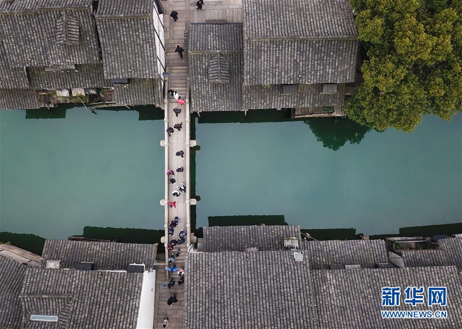 2月25日,游人在烏鎮(zhèn)游覽觀光(無人機拍攝)。 隨著氣溫升高,浙江省桐鄉(xiāng)市烏鎮(zhèn)景區(qū)春意萌動。 新華社記者翁忻旸攝