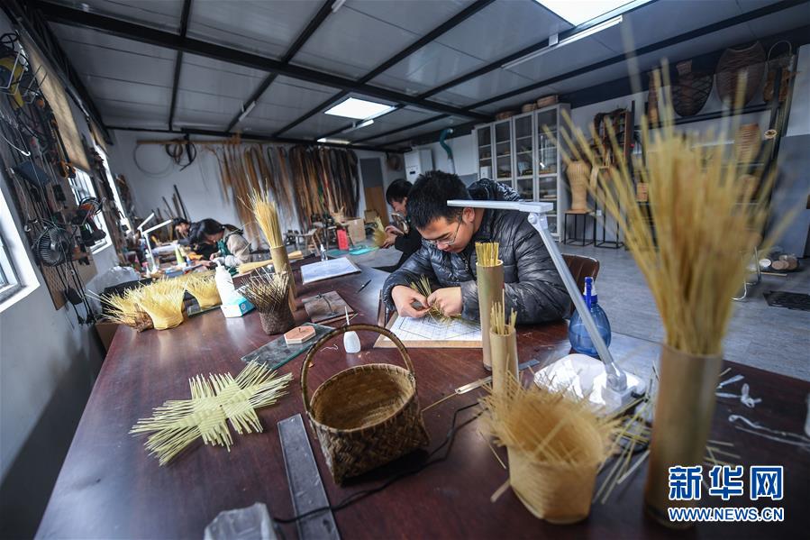 在烏鎮(zhèn)陳莊村竹蕓工房內(nèi),工作人員在制作竹編產(chǎn)品(11月20日攝)。 新華社記者 徐昱 攝