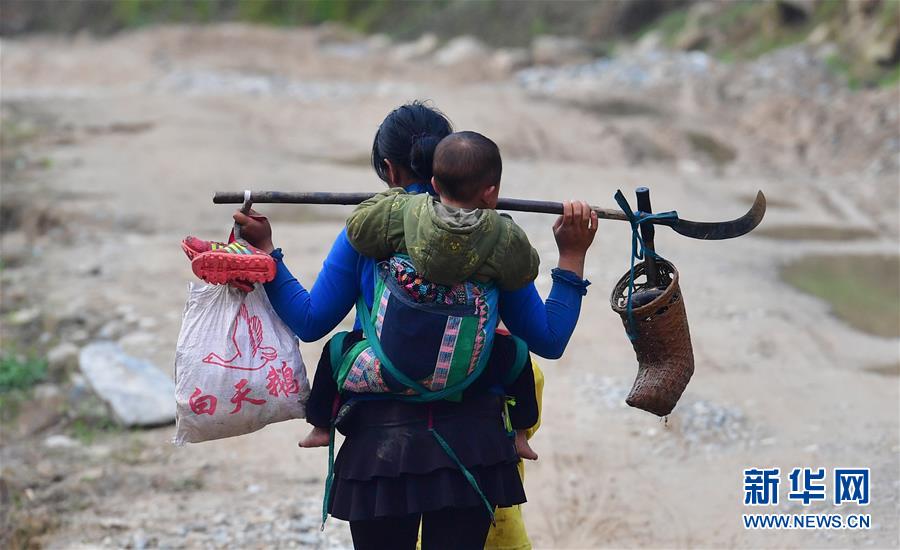 在黔桂烏英苗寨,村民勞作歸來(3月26日攝)。 新華社記者 黃孝邦 攝