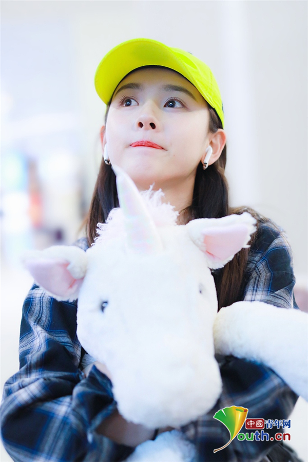2019年5月12日,北京,宋祖兒現身機場。她穿格子襯衫戴小黃帽揮手大步走,元氣少女活力滿滿,抱玩偶變身獨角獸女孩童趣十足超可愛。