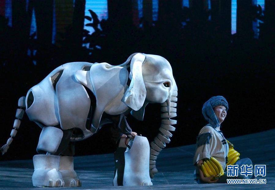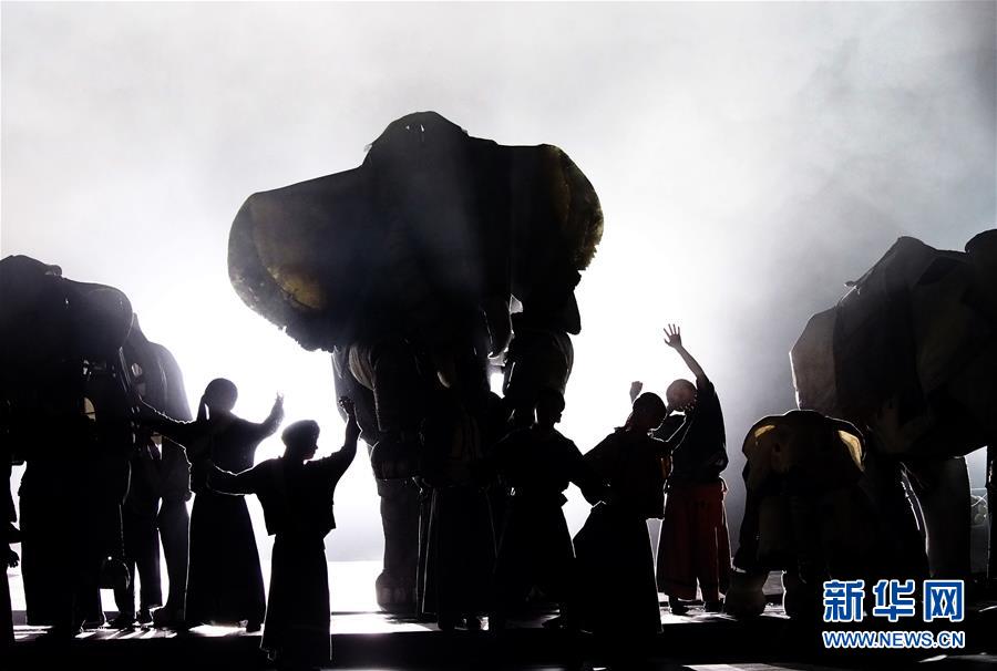 5月15日在上海美琪大戲院拍攝的新版大型人偶舞臺(tái)劇《最后一頭戰(zhàn)象》劇照。 當(dāng)日,作為第12屆中國(guó)藝術(shù)節(jié)的參演劇目,大型人偶舞臺(tái)劇《最后一頭戰(zhàn)象》在經(jīng)過(guò)4次硬件技術(shù)升級(jí)和故事修改后亮相上海美琪大戲院。 新華社記者 任瓏 攝