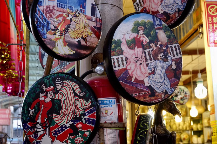 兩千多年前,這里是古疏勒國王宮所在地,從500多年前建立艾提尕爾清真寺起始,吾斯塘博依街逐漸成為一條喧鬧繁華的主街,匯聚了當(dāng)?shù)刈畛錾哪芄で山?,是名副其?shí)的手工藝品一條街。李仁奇 攝