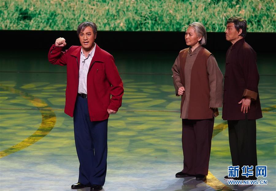 6月2日,演員在第十二屆中國藝術(shù)節(jié)閉幕式上匯報演出獲得文華大獎的河北梆子《李保國》選段。 新華社記者 任瓏 攝