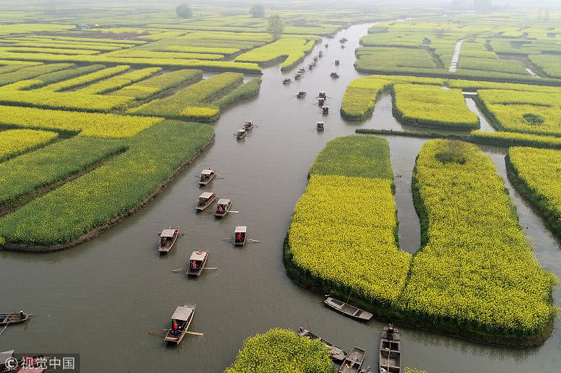 2019年4月7日,江蘇省興化市千垛菜花景區(qū)迎來旅游高峰期,數(shù)萬游客前來欣賞盛開的油菜花,樂享假日好時光。