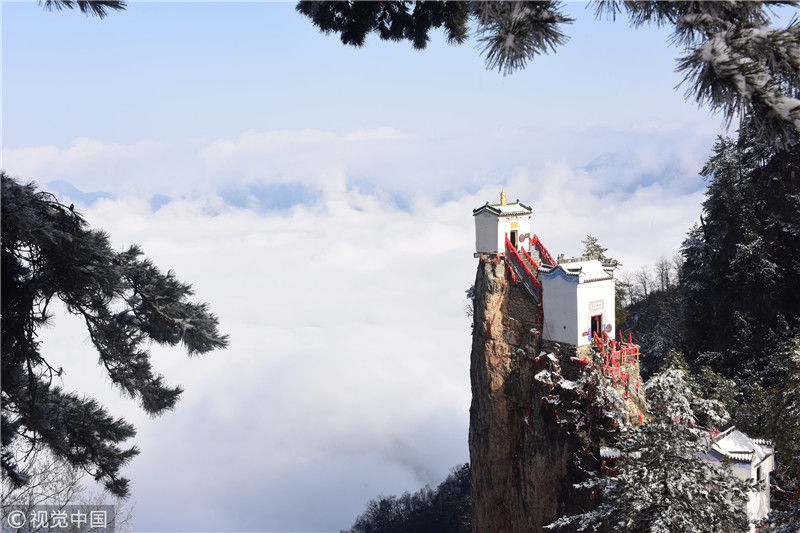 3月3日拍攝的塔云山金頂觀音殿。雪后初霽,秦嶺深處的塔云山景區(qū)云海翻騰,宛如仙境。位于陜西省鎮(zhèn)安縣柴坪鎮(zhèn)境內(nèi)的塔云山,其主峰上的古建筑群始建于明正德年間,其中金頂觀音殿建于塔云山萬仞絕頂之上,遠(yuǎn)遠(yuǎn)望去,壯觀無比。 新華社記者陶明攝