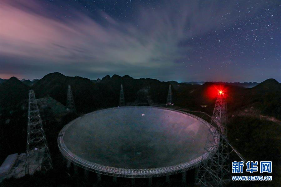 8月27日拍攝的星空下的“中國天眼”。新華社記者 歐東衢 攝