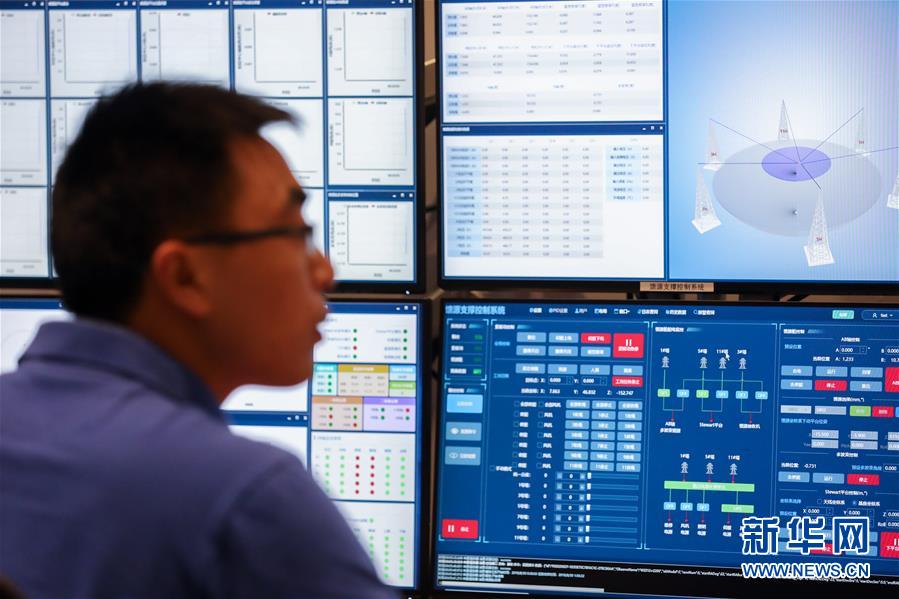 8月30日凌晨,工作人員在“中國天眼”總控室內(nèi)工作 。新華社記者 歐東衢 攝