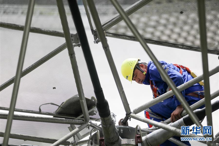 8月28日,工作人員在“中國天眼”內(nèi)進行檢修。新華社記者 歐東衢 攝