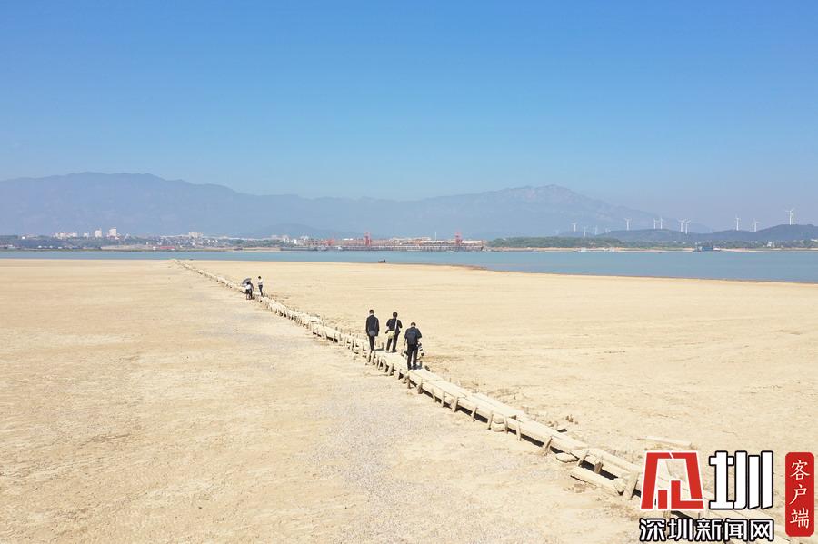 江西九江,隨著水位持續(xù)下降,豐水期浸泡在鄱陽湖底被譽為“中國最長的湖中古木石橋”露出水面。