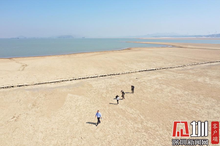 江西九江,隨著水位持續(xù)下降,豐水期浸泡在鄱陽湖底被譽(yù)為“中國最長的湖中古木石橋”露出水面。