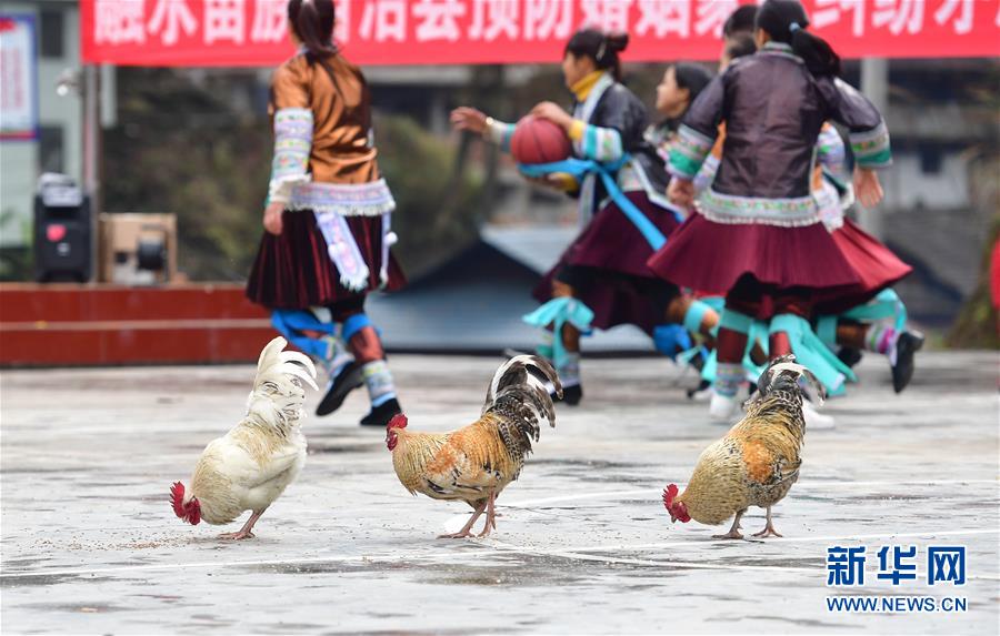 12月25日,苗族婦女參加趣味籃球比賽。 當日,廣西融水苗族自治縣桿洞鄉(xiāng)黨鳩村在柳州市婦聯支持下,在烏英苗寨舉辦家庭運動會,通過挑禾把、趣味籃球賽等活動,迎接即將到來的傳統(tǒng)苗年。 新華社記者 黃孝邦 攝