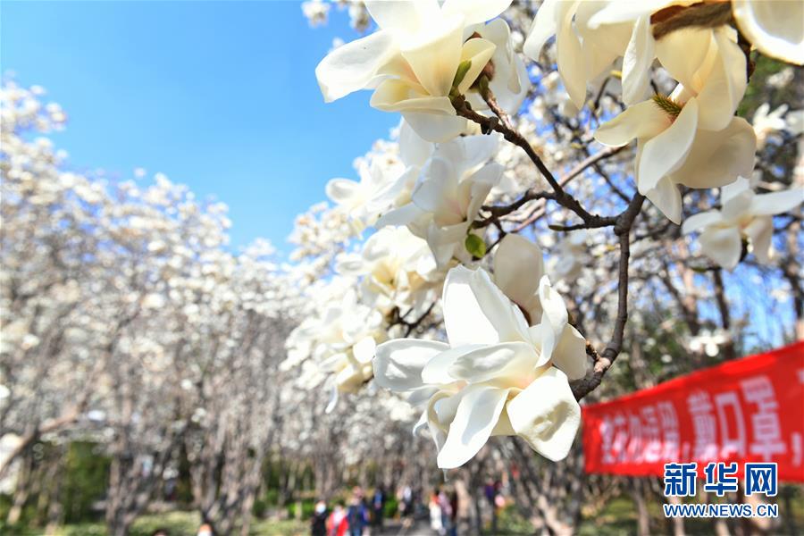 3月18日拍攝的百花公園內(nèi)盛開的玉蘭花。