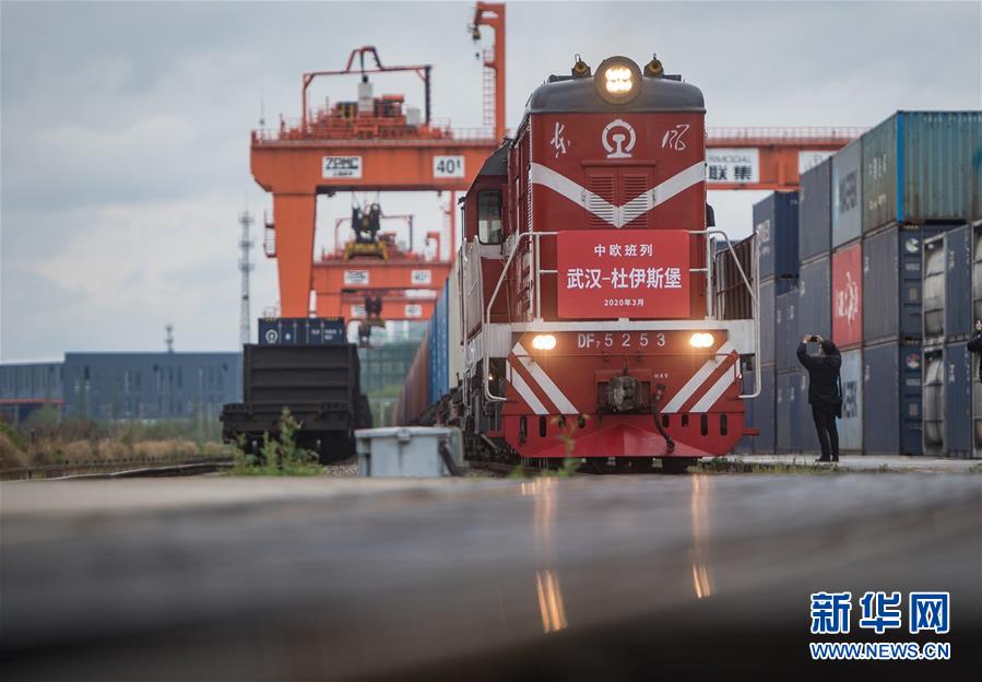 3月28日,開往德國杜伊斯堡的中歐(武漢)班列從中鐵聯(lián)集武漢中心站駛出。3月28日上午10點,中歐班列(武漢)X8015/6次運載50只集裝箱從中鐵聯(lián)集武漢中心站始發(fā)。班列將從阿拉山口出境,預(yù)計15天后抵達德國杜伊斯堡。這是自疫情防控以來,從武漢開出的首趟中歐班列,標志著中歐班列(武漢)恢復(fù)常態(tài)化運營。新華社記者肖藝九攝