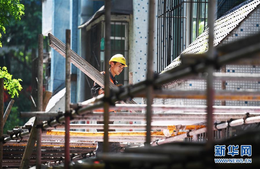 4月26日,工人在渝中區(qū)大溪溝街道雙鋼路社區(qū)改造提升項目施工現(xiàn)場作業(yè)。近段時間以來,重慶市渝中區(qū)大溪溝街道加快推進(jìn)轄區(qū)內(nèi)老舊小區(qū)改造提升工作,從環(huán)境衛(wèi)生、房屋管理及養(yǎng)護(hù)、安防及車輛管理、綠化管理等方面進(jìn)行綜合改造提升,以增強(qiáng)社區(qū)居民的幸福感、獲得感、安全感。新華社記者王全超攝