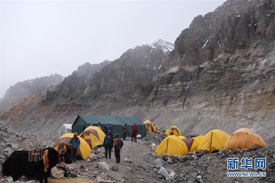 這是海拔5800米的珠峰過渡營地(5月8日攝)。珠峰過渡營地海拔5800米,是連接前進營地和珠峰大本營的重要一站。登山愛好者從大本營徒步大約四個小時就能抵達過渡營地。此段路程亂石林立,同時也能欣賞壯美的冰川。新華社記者孫非攝