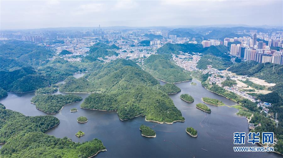 6月2日拍攝的貴陽市阿哈湖國家濕地公園(無人機(jī)照片)。初夏時節(jié),貴州省貴陽市阿哈湖國家濕地公園草木蒼翠,風(fēng)景如畫,吸引人們前來休閑游玩。新華社記者陶亮攝。