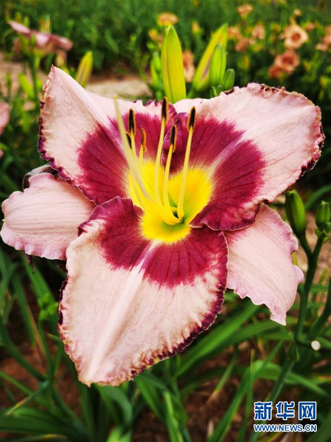中國黃花菜(萱草)良種繁育研究中心展示區(qū)里的萱草花(5月29日攝)。新華社記者謝櫻攝。
