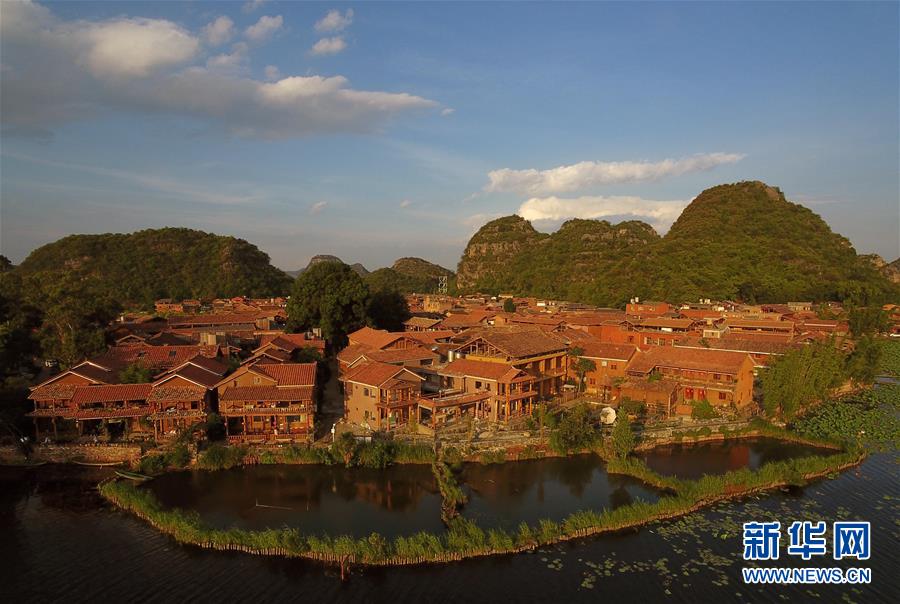 云南丘北縣普者黑仙人洞村(6月2日攝,無人機照片)。新華社記者楊宗友攝。