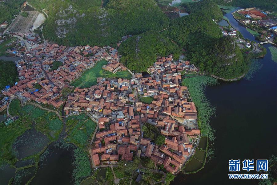 俯瞰云南丘北縣普者黑仙人洞村(6月2日攝,無人機(jī)照片)。新華社記者楊宗友攝。