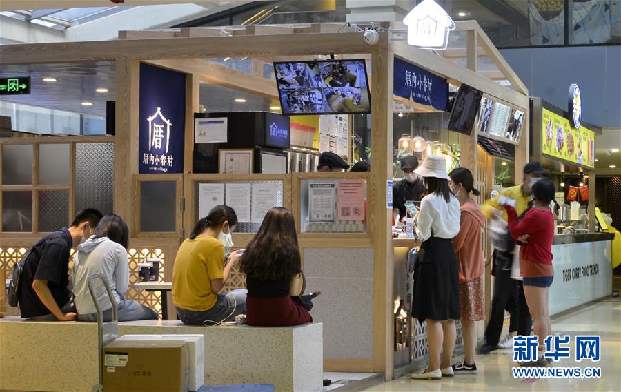 6月3日,市民及游客在西單大悅城商場內(nèi)購買食品。近日,游人和市民紛紛來到北京市的王府井、西單、前門大街等著名商業(yè)街購物休閑,這些老商業(yè)街開始逐步恢復(fù)昔日的繁華。新華社記者李欣攝。