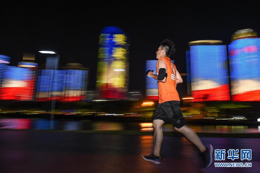 一位市民在??谌f綠園夜跑(5月15日拍攝)。近年來,夜跑成為越來越多都市人熱衷的健身方式之一。在海南??冢慨?dāng)夜幕降臨,“夜跑族”來到海口萬綠園、世紀(jì)公園等夜跑場所跑步,用一身酣暢淋漓的汗水?dāng)[脫白天工作中的壓力,享受跑步帶來的歡愉。新華社記者 蒲曉旭 攝