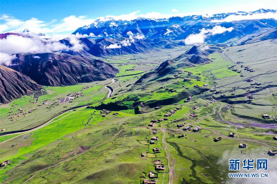 俯瞰丁青縣色扎鄉(xiāng)卡通村(6月14日攝,無人機(jī)照片)。
