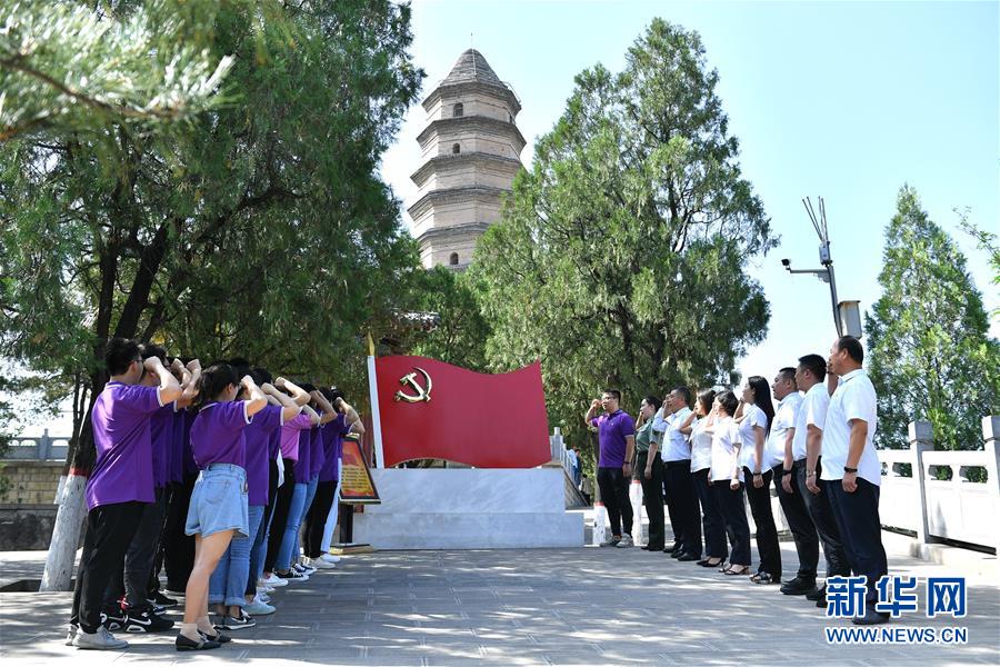 6月29日,黨員干部在延安市寶塔山重溫入黨誓詞。臨近“七一”,革命圣地延安的黨員干部紛紛來(lái)到紅色景區(qū),舉行主題黨課、現(xiàn)場(chǎng)教學(xué)、重溫入黨誓詞等活動(dòng)。新華社記者張博文攝