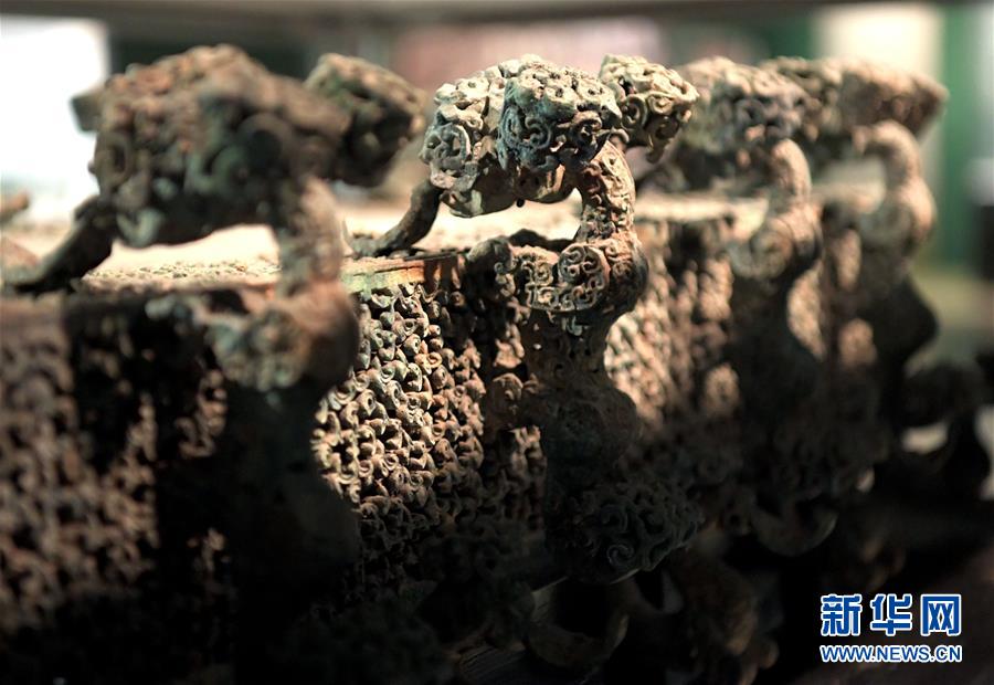 這是河南博物院展廳里的云紋銅禁(2019年11月18日攝)。新華社記者李安攝