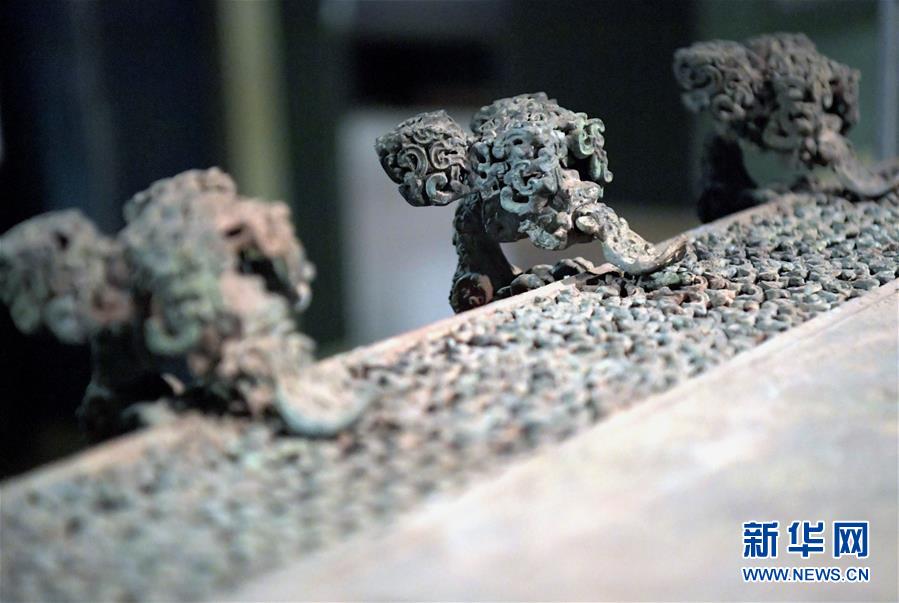 這是河南博物院展廳里云紋銅禁上的龍形附獸(2019年11月18日攝)。新華社記者李安攝