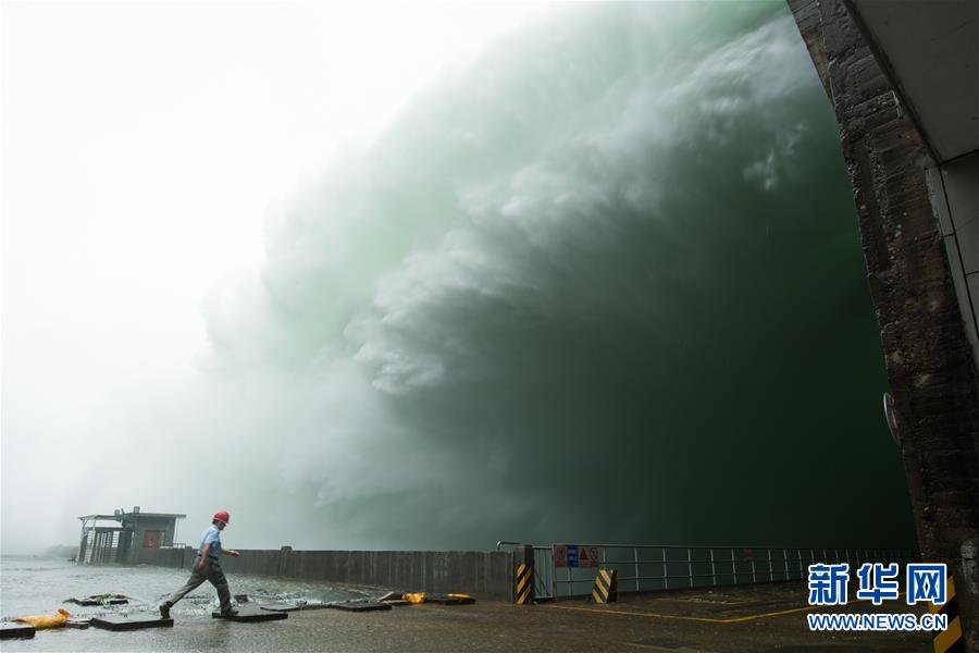 7月7日,新安江電廠工作人員從開啟7孔泄洪的新安江水庫壩底經(jīng)過。受持續(xù)降水影響,浙江新安江水庫水位持續(xù)快速上升。繼當(dāng)日10時(shí)開啟3孔、12時(shí)開啟5孔泄洪后,新安江水庫于16時(shí)增加到7孔泄洪。新安江水庫是華東地區(qū)最大的水庫,在錢塘江流域的防洪度汛中起到關(guān)鍵作用。新華社記者翁忻旸攝