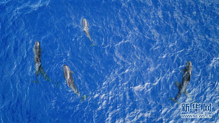 這是7月20日在南海某海域拍攝的短肢領(lǐng)航鯨(無人機(jī)照片)。新華社記者張麗蕓攝