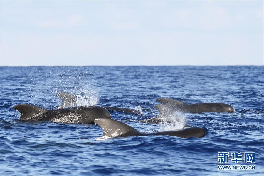 這是7月20日在南海某海域拍攝的短肢領(lǐng)航鯨。新華社記者張麗蕓攝