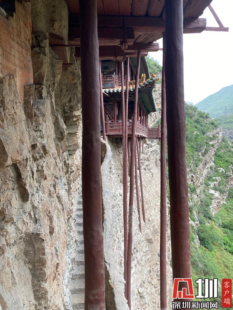 要登上懸空寺,需要走過一條非常窄的道路,這條路修建在懸崖的旁邊,依靠著山勢而建造。李穎 攝