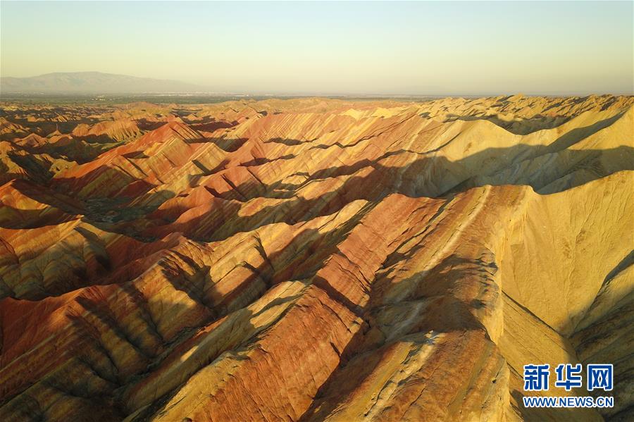 這是7月27日拍攝的張掖世界地質(zhì)公園七彩丹霞景區(qū)景觀(無(wú)人機(jī)照片)。新華社記者 范培珅 攝