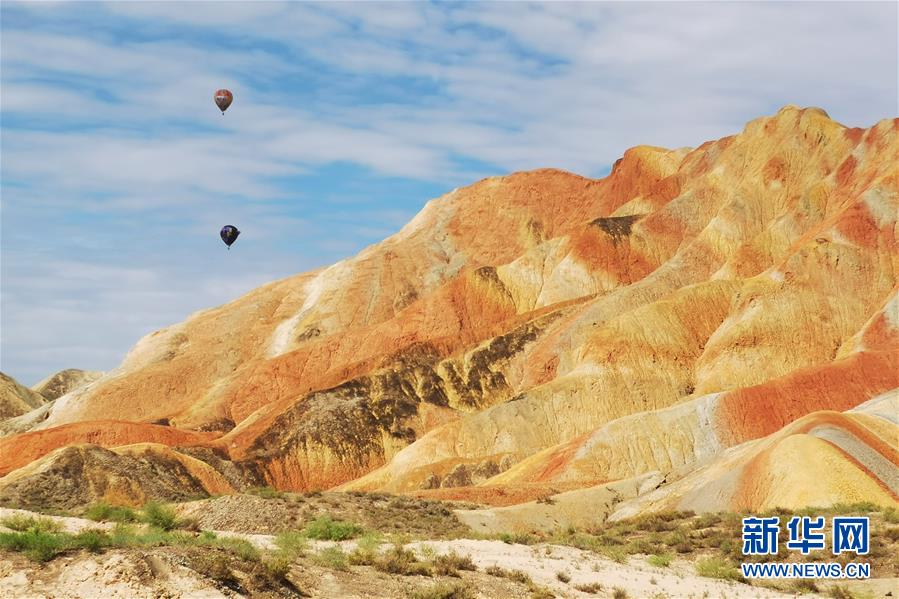 盛夏時(shí)節(jié),地處甘肅省張掖市的張掖世界地質(zhì)公園迎來(lái)最美季節(jié)。張掖世界地質(zhì)公園最顯著的特征是有由色彩斑斕的褶皺泥巖和砂巖組成的彩色丘陵,同時(shí)還擁有自然侵蝕在山體上形成的“窗欞狀”“宮殿式”丹霞地貌和古代洋殼殘余九個(gè)泉蛇綠巖套。
