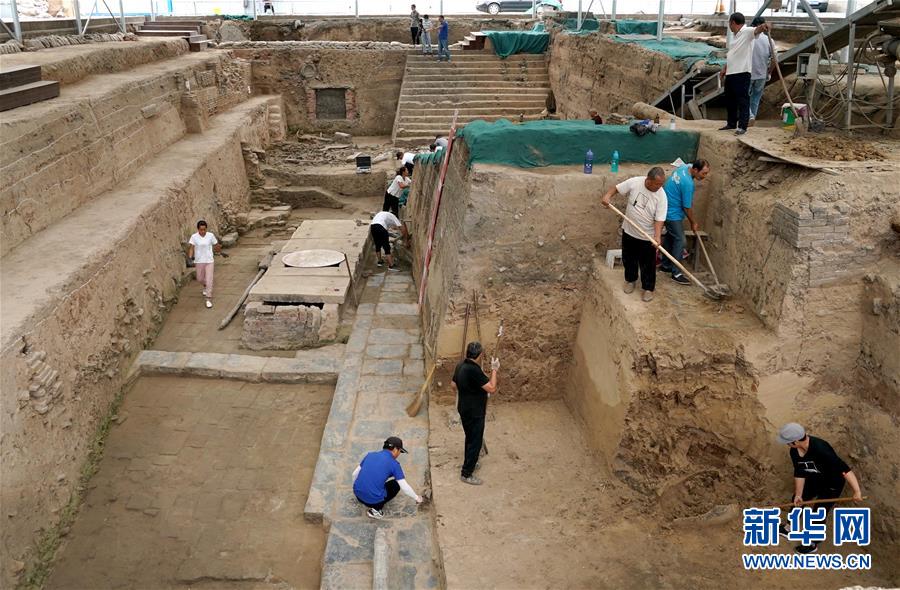 工作人員在河南省開(kāi)封市州橋及附近汴河遺址進(jìn)行清理發(fā)掘(7月27日攝)。新華社記者李安攝