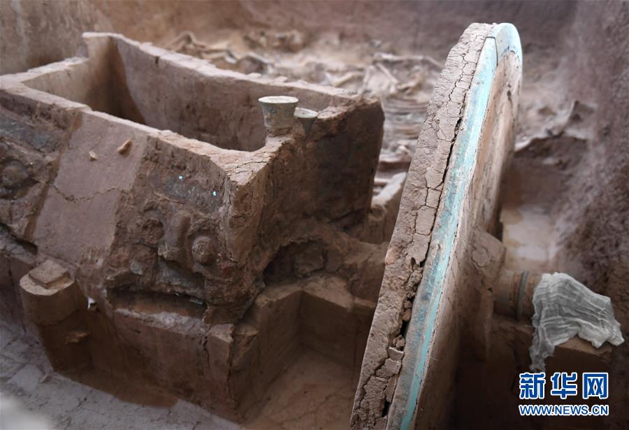 這是7月30日在陜西省考古研究院涇渭基地拍攝的西周晚期青銅輪牙馬車青銅輪牙。新華社記者李一博攝