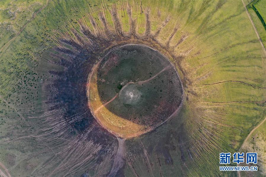 這是在烏蘭哈達(dá)火山群拍攝的一處火山口(7月29日攝,無人機(jī)照片)。新華社記者劉磊攝