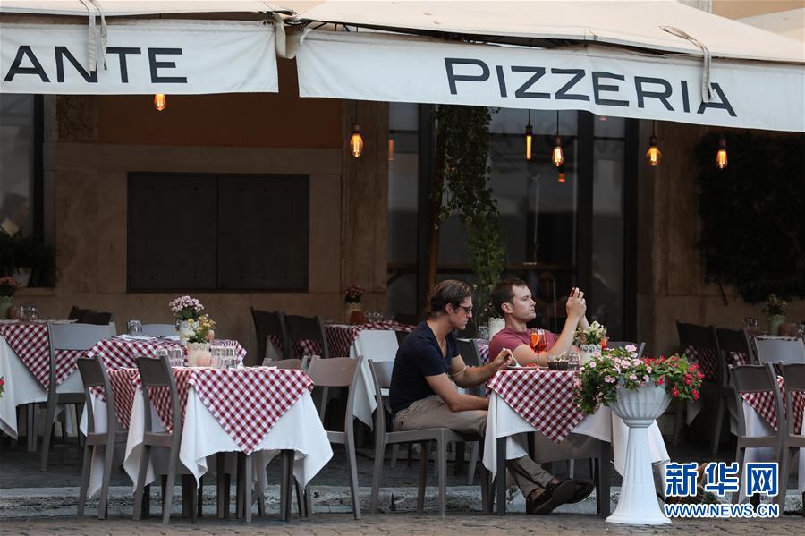 8月4日,人們在意大利首都羅馬一家餐廳用餐。受新冠疫情影響,今年夏天羅馬的歷史中心區(qū)游客比往年明顯減少。新華社記者程婷婷攝