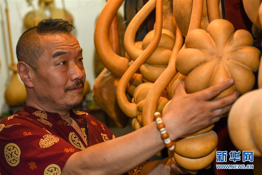8月5日,侯景偉挑選適合創(chuàng)作的葫蘆。今年55歲的吉林四平人侯景偉自幼與家人學(xué)習(xí)雕刻、烙畫藝術(shù)。經(jīng)過多年潛心研究,他將浮雕和烙畫工藝相結(jié)合,通過拋光、起稿、雕刻、烙燙、套色等十余道工藝,制作展現(xiàn)傳統(tǒng)文化、民俗故事的葫蘆工藝品。2020年,侯景偉被評為四平市非物質(zhì)文化遺產(chǎn)項(xiàng)目侯氏葫蘆雕刻烙畫代表性傳承人。他說:“希望有更多人加入到非遺傳承隊(duì)伍中,讓小葫蘆‘講’出更多民俗故事?!毙氯A社記者張楠攝
